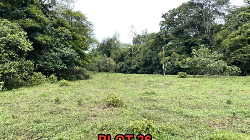La parcella numero 26 è un vero gioiello all’interno del nostro splendido villaggio in Costa Rica. Con una superficie di 5.000 metri quadrati e una forma allungata, questa parcella è interamente costeggiata dal fiume che attraversa il villaggio. Attualmente, la parcella ha già ricevuto un’offerta ed è sotto trattativa.